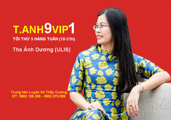 - Anh9VIP1: Tối Thứ 5 hàng tuần, từ 18-21h. GV: Ths Ánh Dương ULIS (Ths Bùi Ánh Dương)